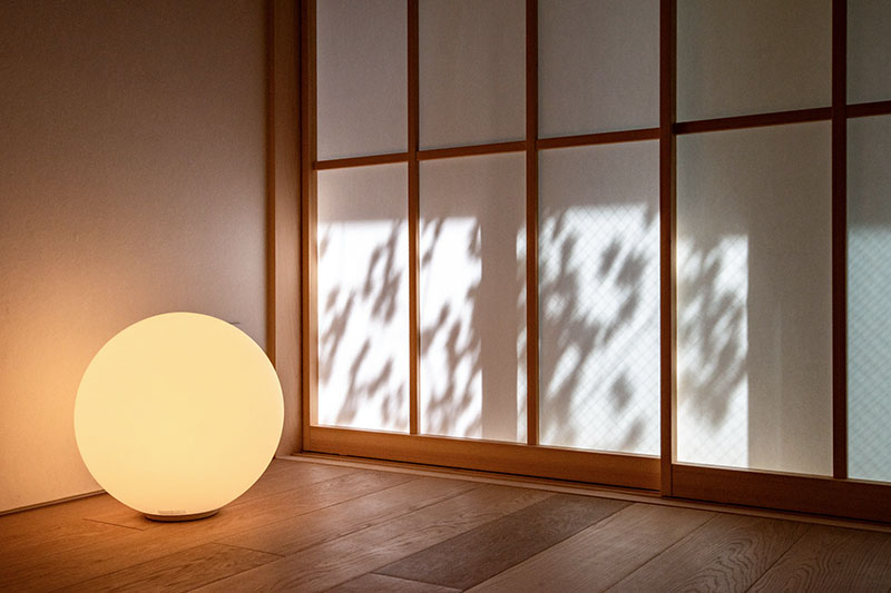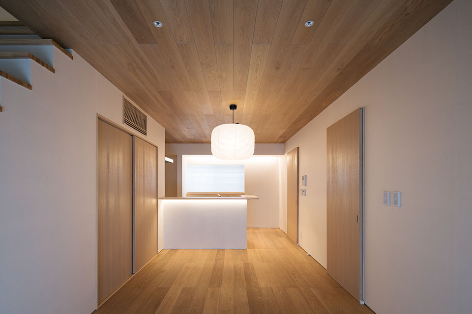 Soft natural light filters through Shoji screens, while indirect lighting embedded in counters and walls subtly transforms the atmosphere as the day unfolds.