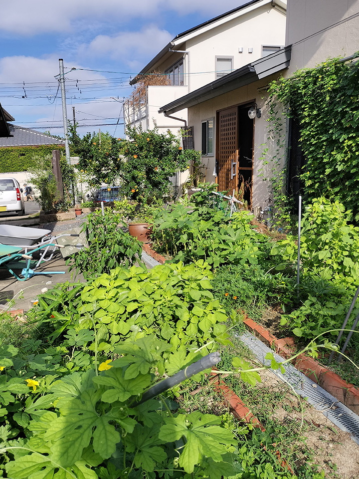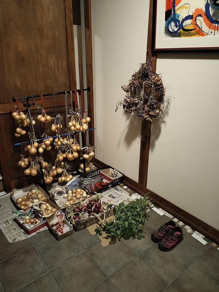 Next to the entrance, you’ll find a pomegranate tree. In the garden: loquat, blackberry, blueberry, yuzu, goji berries, and more bear fruit each year. Seasonal plants like Japanese ginger, water butterbur, peonies, Christmas roses, daffodils, and creeping thyme allow you to enjoy the beauty of each season.