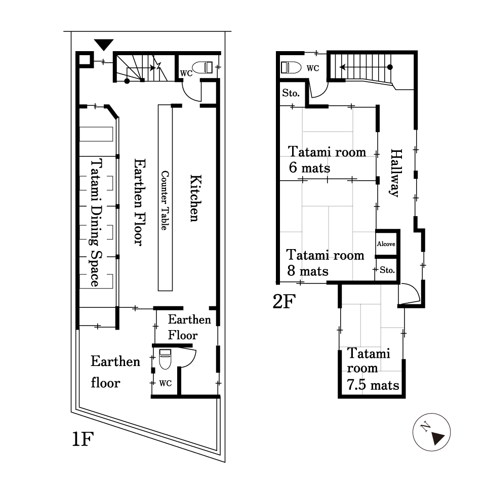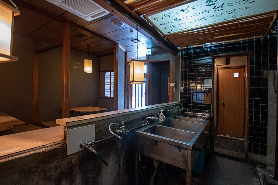 Originally used as an izakaya, this Kyomachiya still retains a restaurant-oriented layout: the first floor features a kitchen and tatami dining rooms, and the second floor contains three Japanese-style rooms.Its exterior blends in with the surroundings in calm tones, preserving the authentic character of a traditional Kyomachiya. Located in a quiet residential area, the property offers great potential for renovation—for example, operating a cafe or restaurant on the first floor and using the second floor as a private residence—making it an ideal option for both residential and business use.