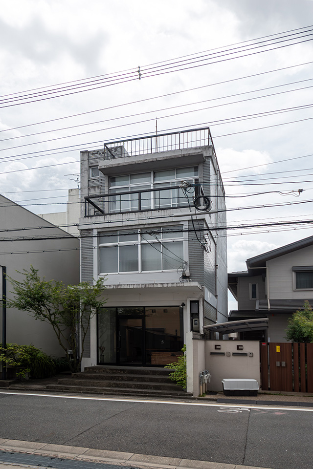 Located in the refined Gosho Higashi area, where many stylish and creative shops gather while maintaining a calm and harmonious atmosphere. This three-story reinforced concrete building faces Ishiyakushi Street, just a 2-minute walk (approx. 155 m) from the Kyoto Imperial Palace (Ishiyakushi-gomon Gate).