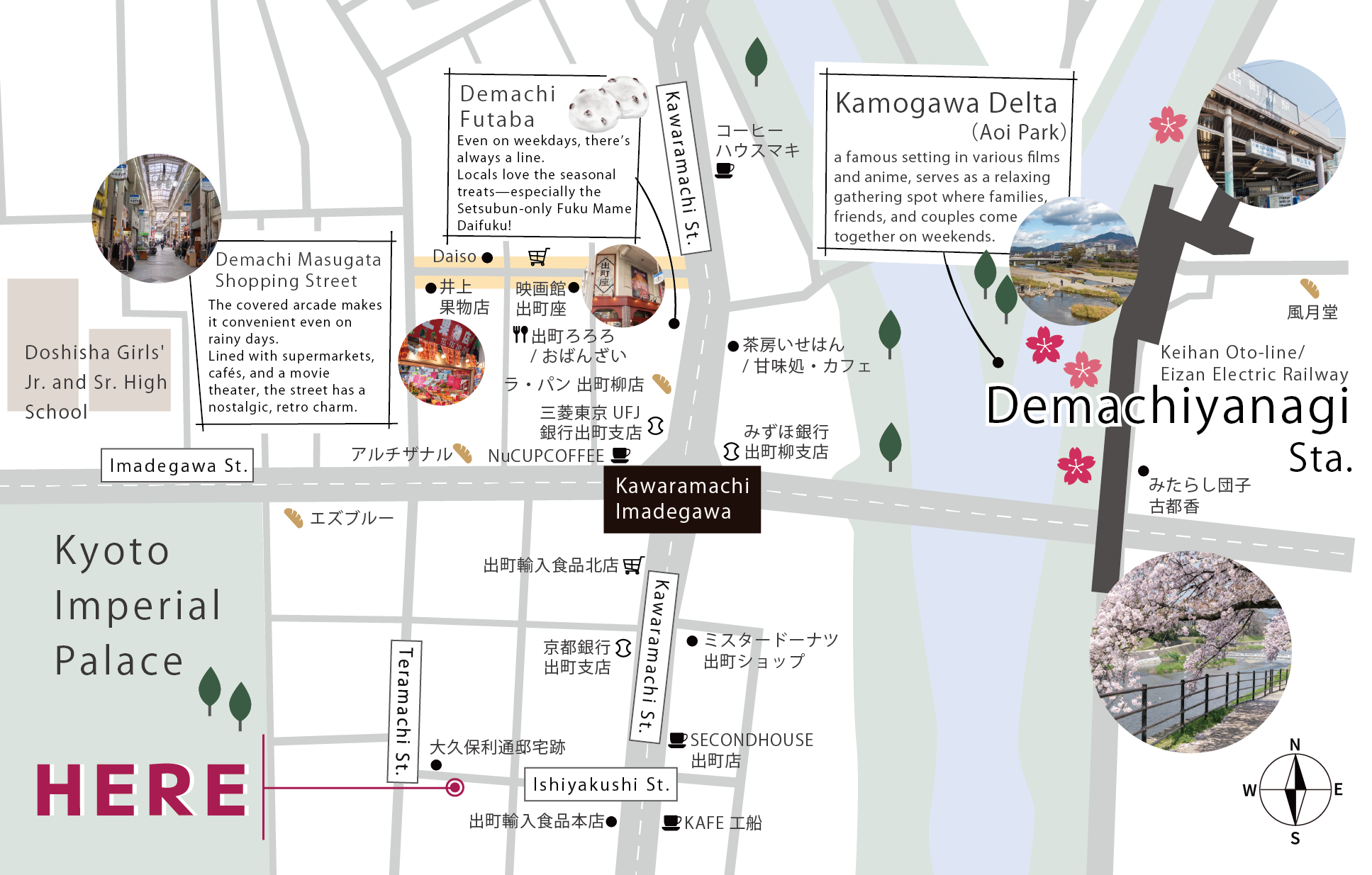 Transportation | Approx. 7 min. walk from Exit 1 of Keihan Oto-line "Demachiyanagi Sta." |