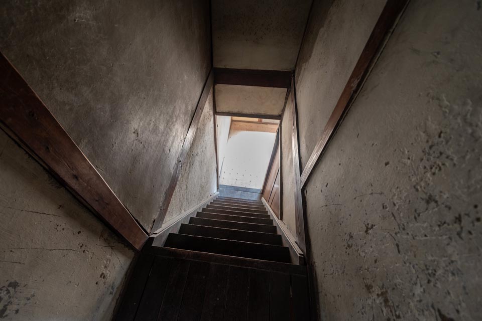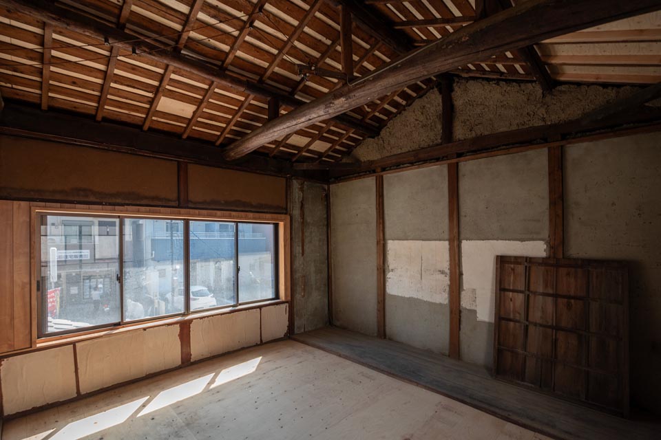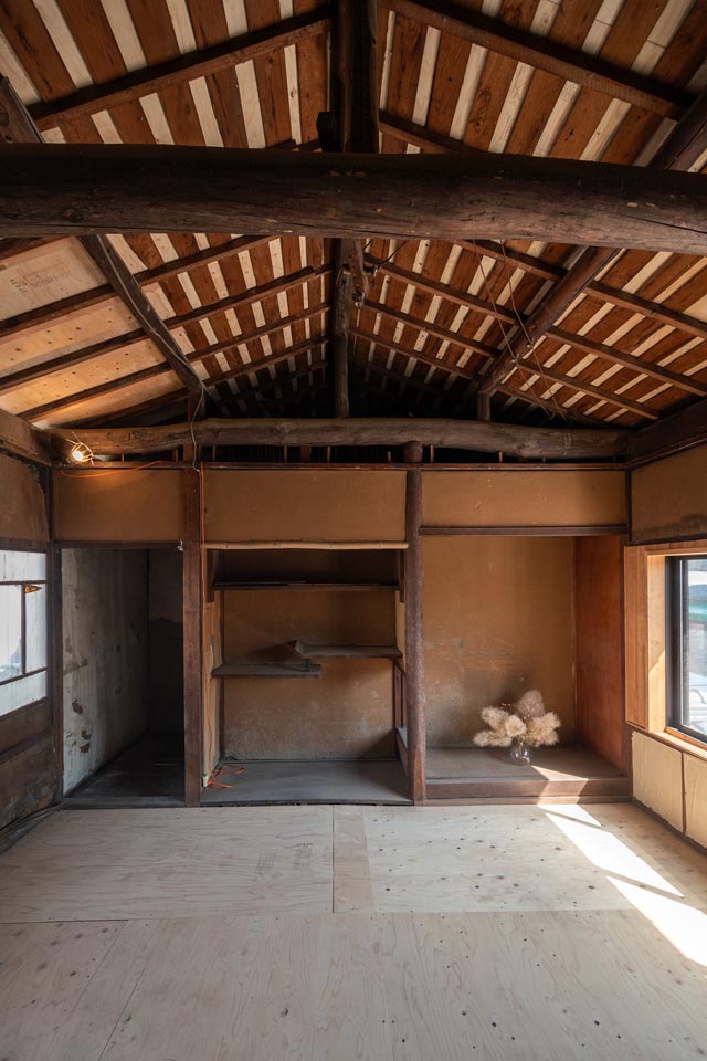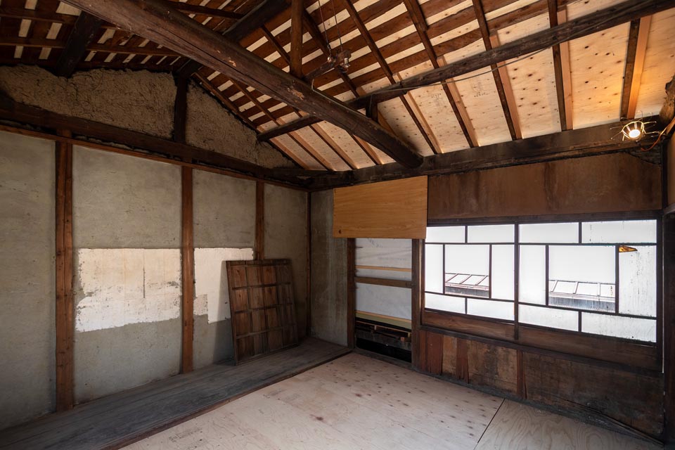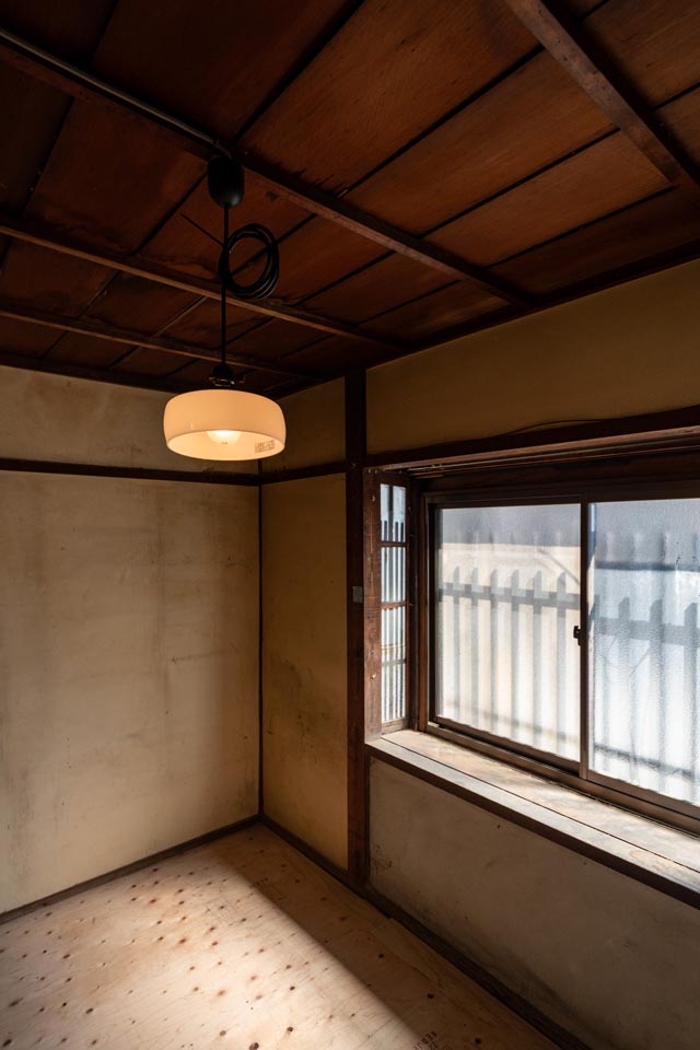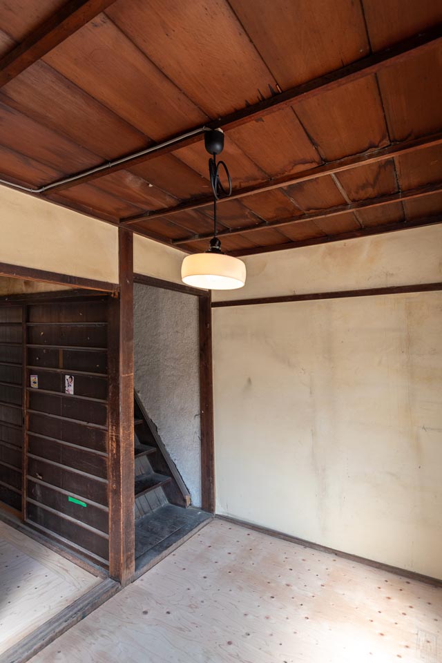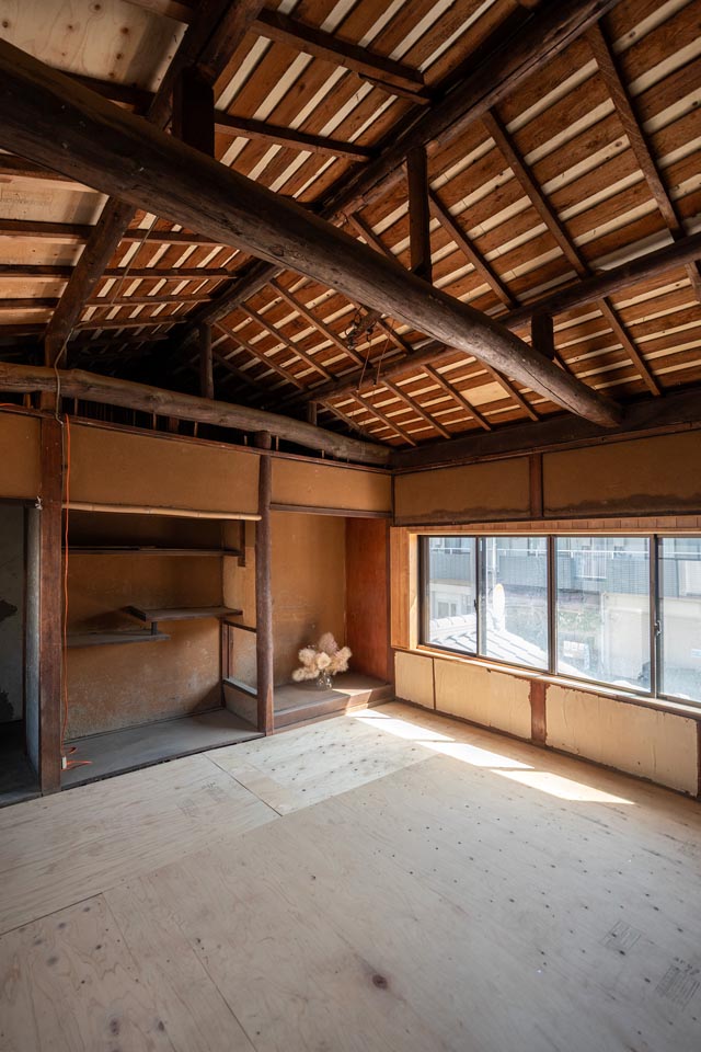 Facing Omiya Street, the second floor receives plenty of natural sunlight. When the ceiling boards are removed, the impressive exposed beams (goronbo) reveal themselves, evoking the history and craftsmanship of the Kyomachiya. Taking advantage of the generous ceiling height, a loft storage space could also be added.