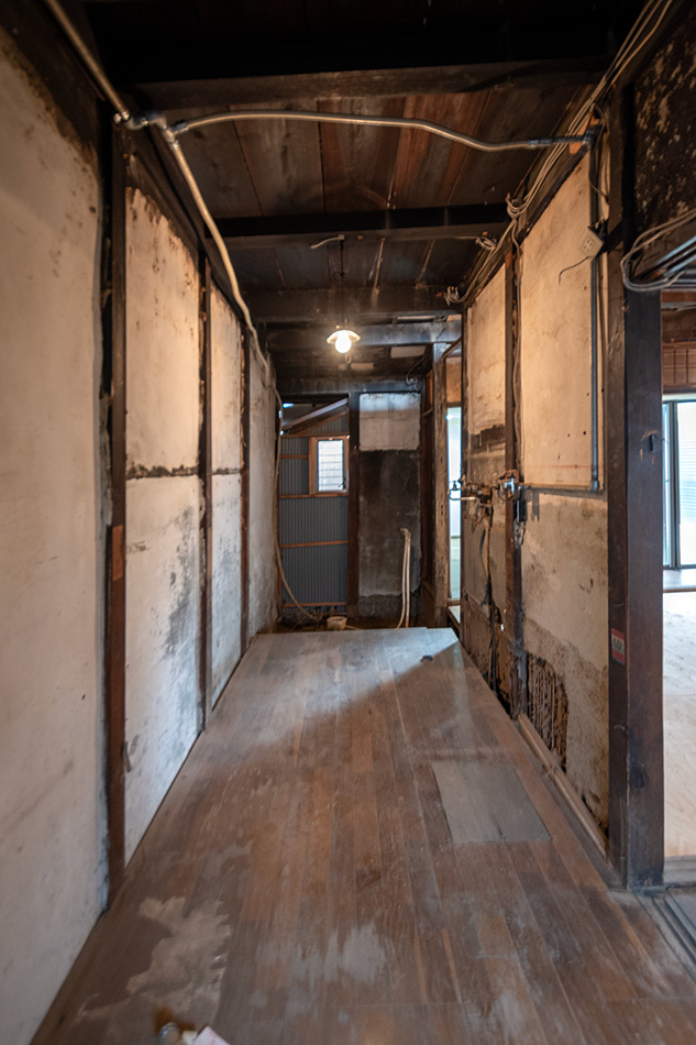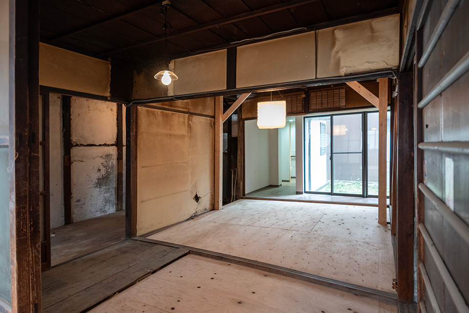 The house features a layout characteristic of traditional Kyomachiya, complete with a garden and engawa. The interior follows a classic “ichiretsu-sanshitsu” floor plan, where three rooms are arranged in a row along a straight toriniwa (earthen floor corridor)—a design commonly found in Kyomachiyas.