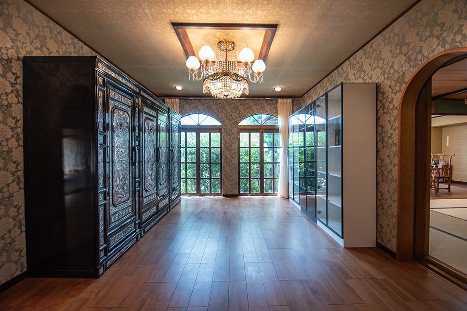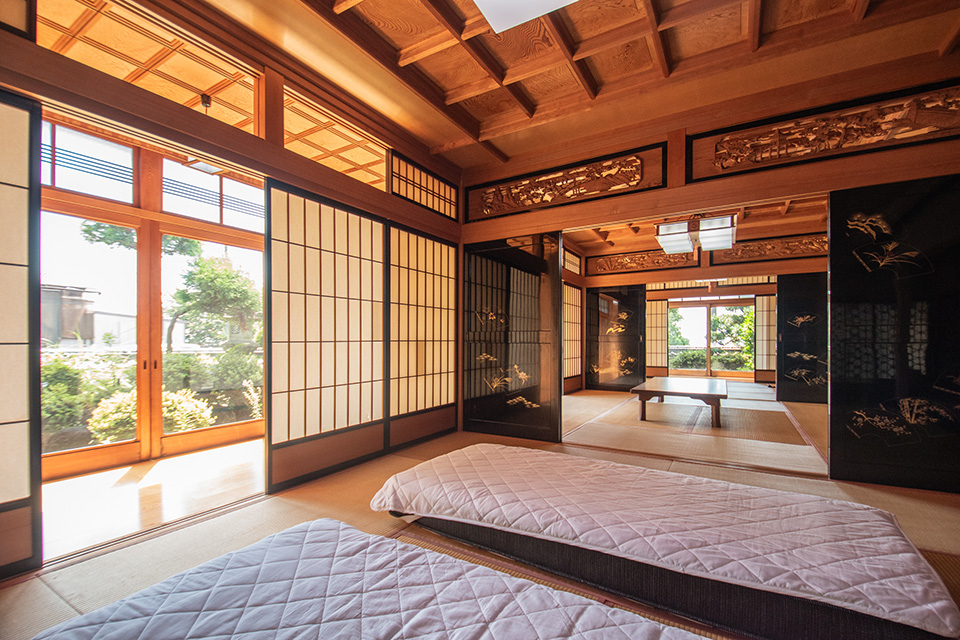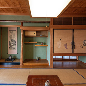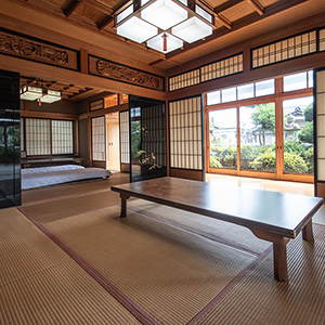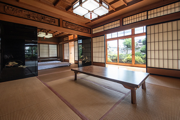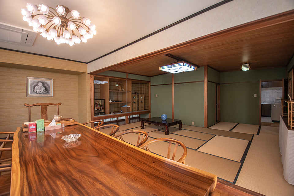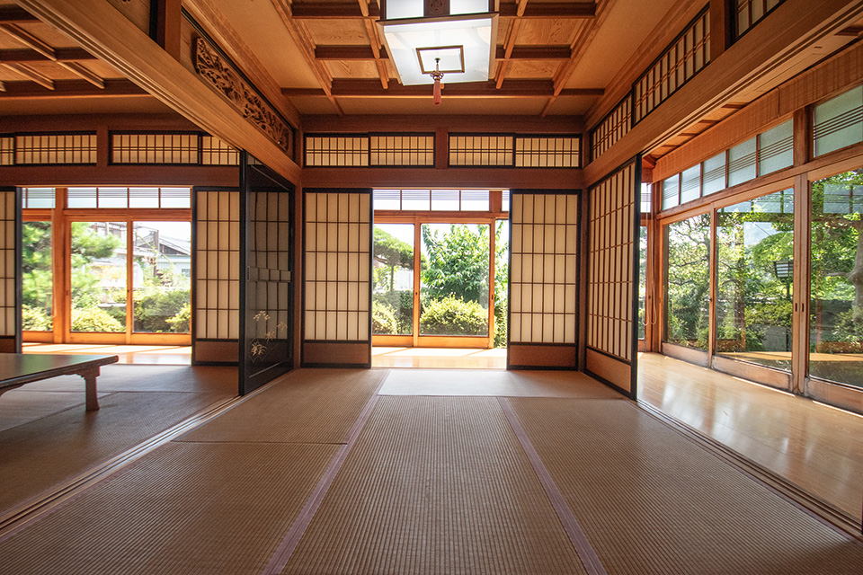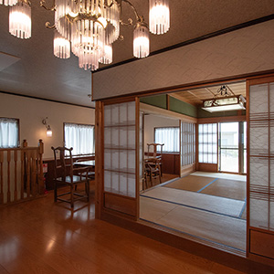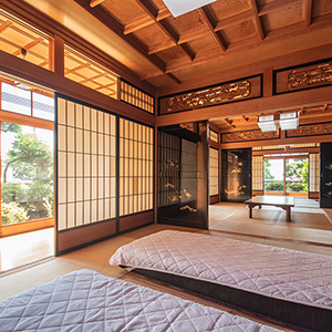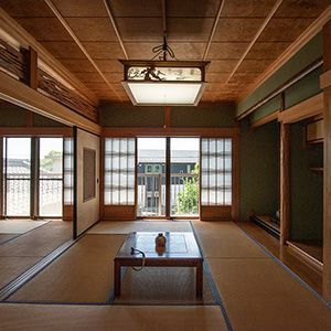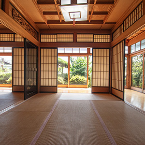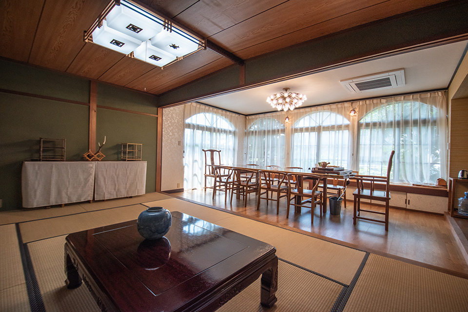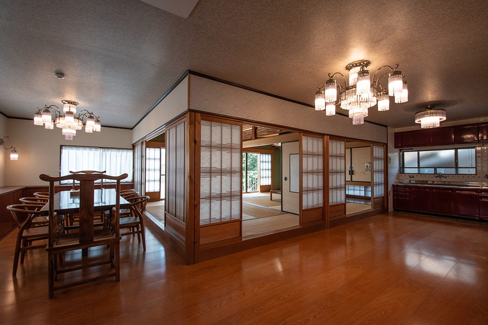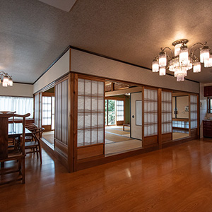 On this spacious property stand four buildings, each with its own distinctive character. The generously sized rooms offer a sense of openness and comfort unique to a countryside residence. Located close to Lake Biwa, the property is ideal as a private villa or a corporate retreat.