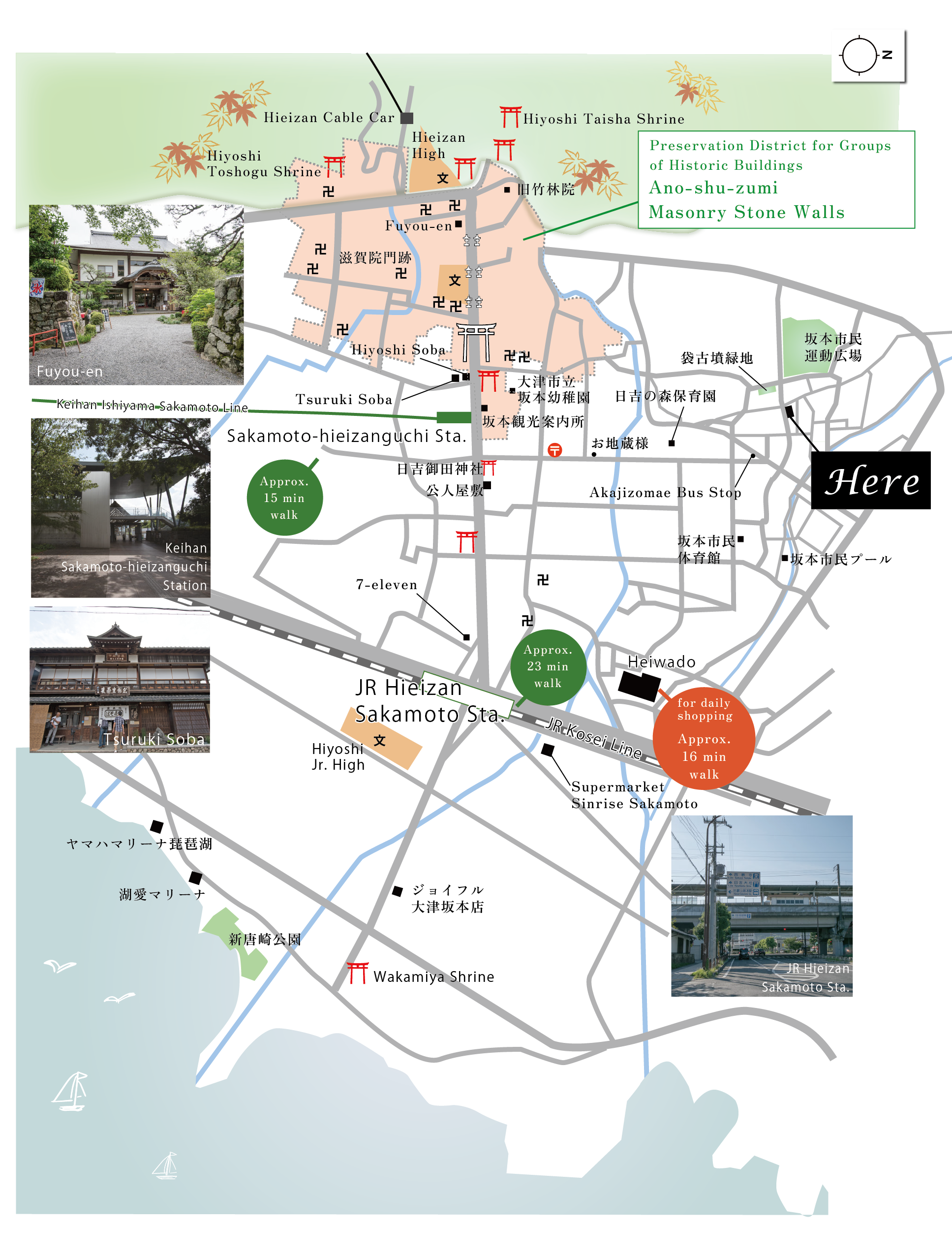 Transportation | Approx. 15 min. walk from Keihan Ishiyama Sakamoto Line "Sakamoto Hieizanguchi Sta." |