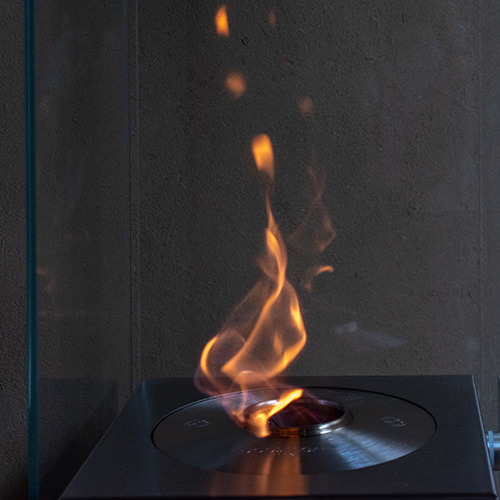 The muted tones lead naturally toward the garden, where the engawa becomes a place for gathering around a gentle, flickering flame.