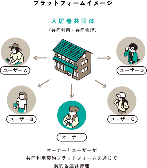 At “Jodoji hiyori”, we propose a time-share style second home using SymTurns, a system that allows multiple users to share the space in a flexible, harmonious way.