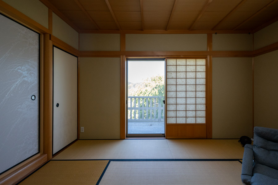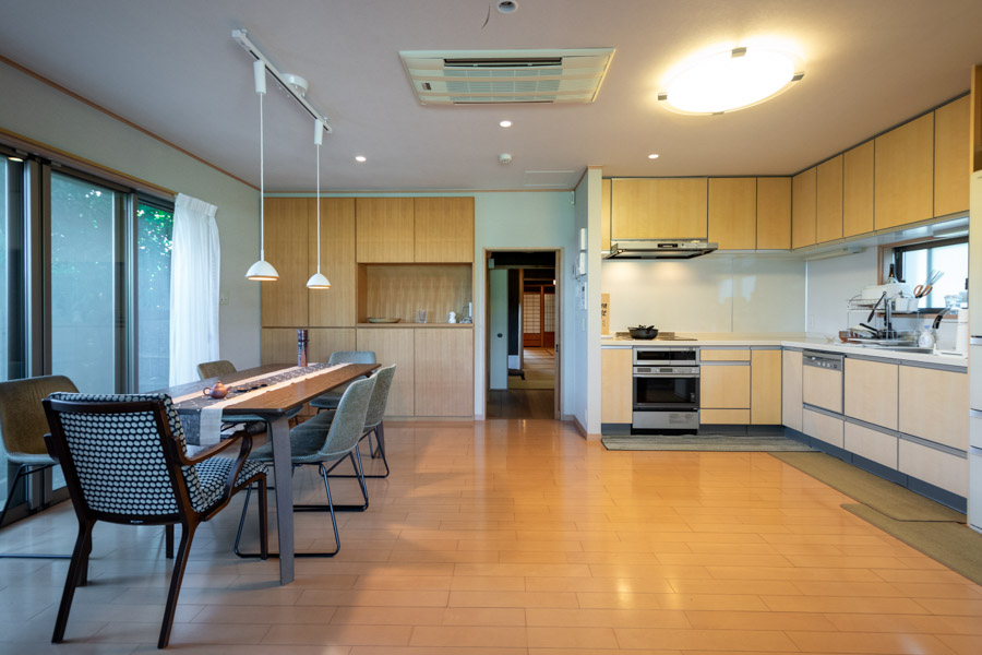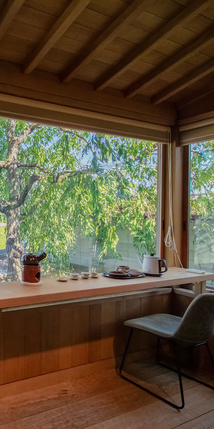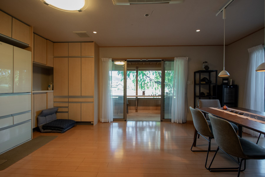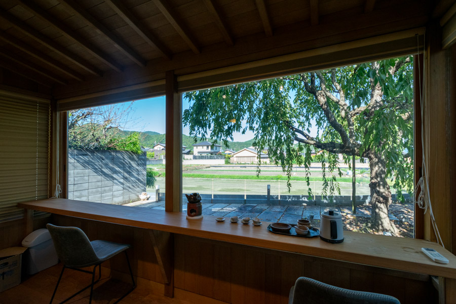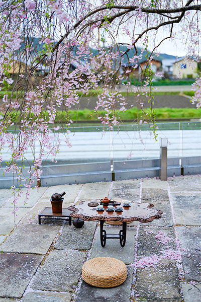 In spring, petals from the weeping cherry trees dance through the air, giving way to the rural landscapes of Saga beyond the garden. This property offers a view unique to this historic region, where the charm of an ancient capital blends with the quiet beauty of nature.