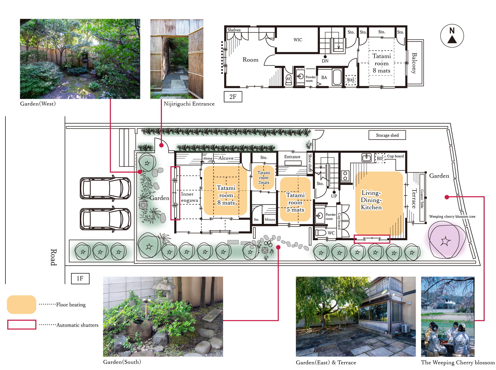 Despite the calm environment, the area offers excellent access with three nearby train lines—JR, Keifuku Electric Railroad (Randen), and the Sagano Romantic Train—and smooth connections to central Kyoto by car or bicycle.