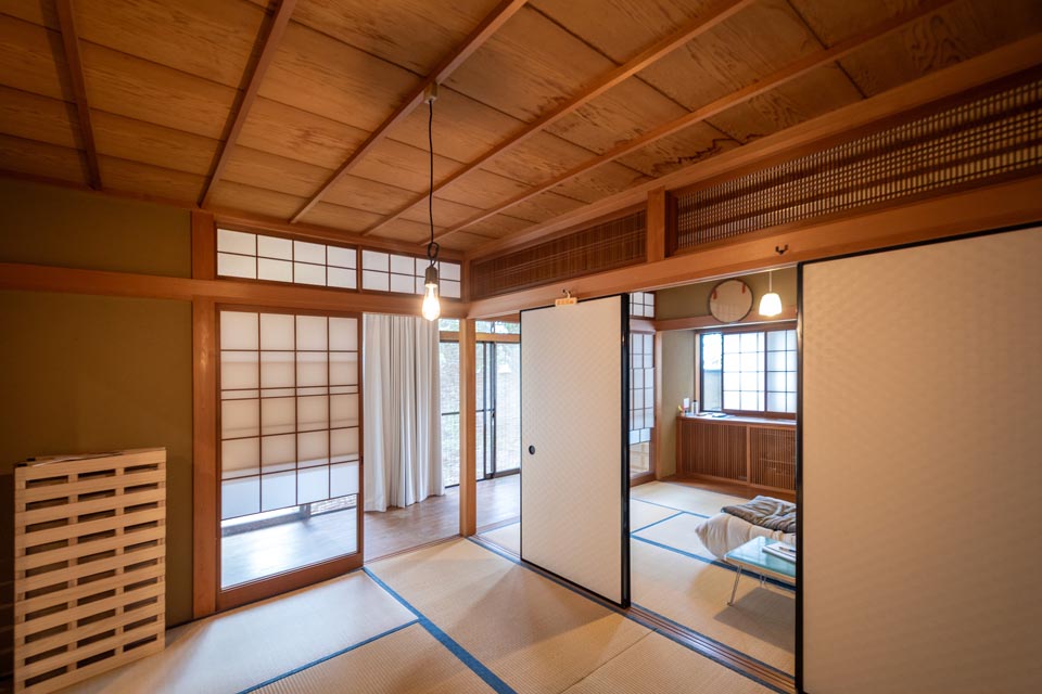 On the second floor are two adjoining tatami rooms, perfectly sized for use as bedrooms. On the second floor are two adjoining tatami rooms, perfectly sized for use as bedrooms. Gentle morning light makes waking up more pleasant, while the daytime sun creates a cheerful and comfortable atmosphere.