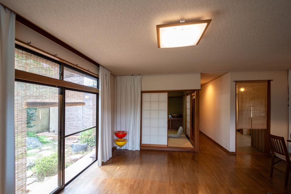 Sunlight pours in through the south-facing windows, brightening daily life. Beyond them lies a traditional Japanese garden, unfolding tranquil scenery and the beauty of each passing season.