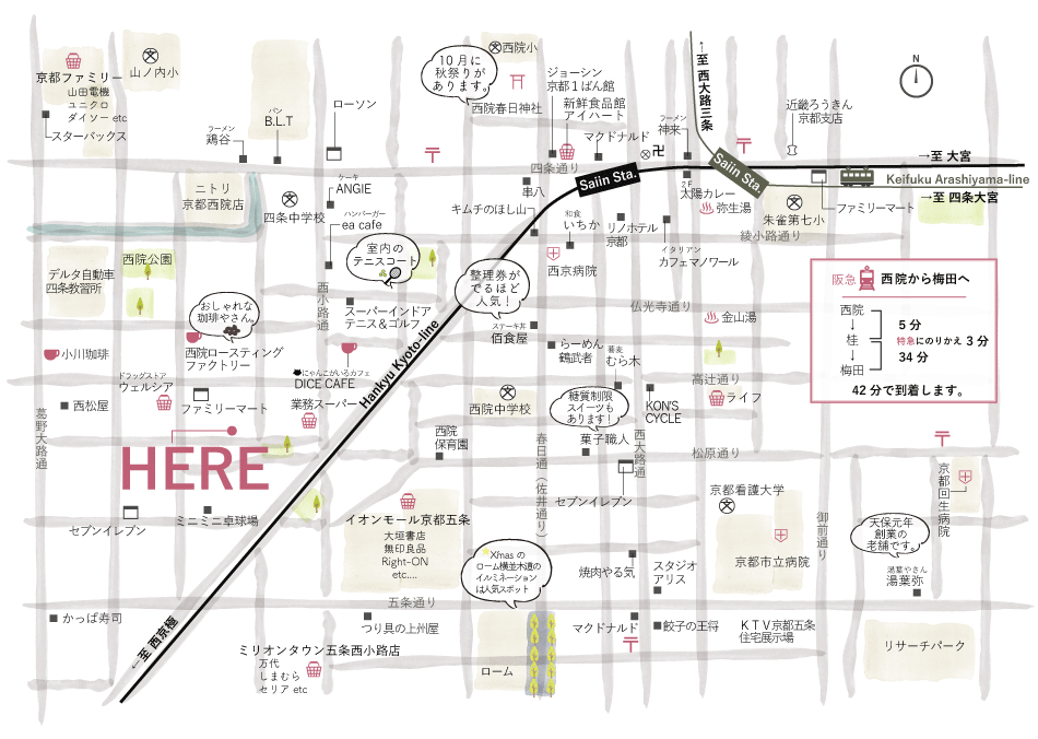 | Transportation | Approx. 13 min. walk from Hankyu Railway "Saiin Sta." |