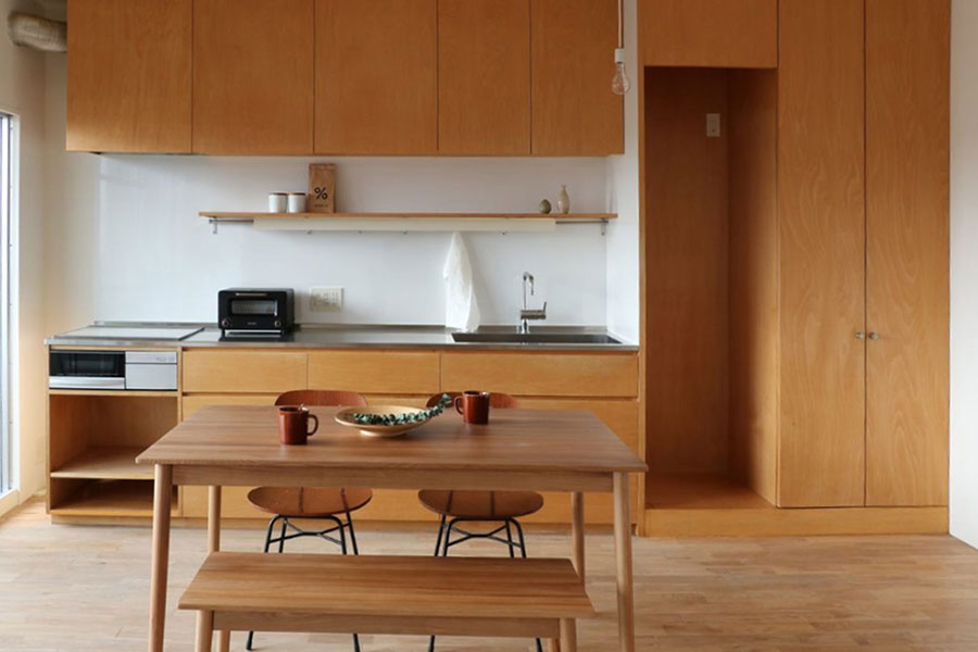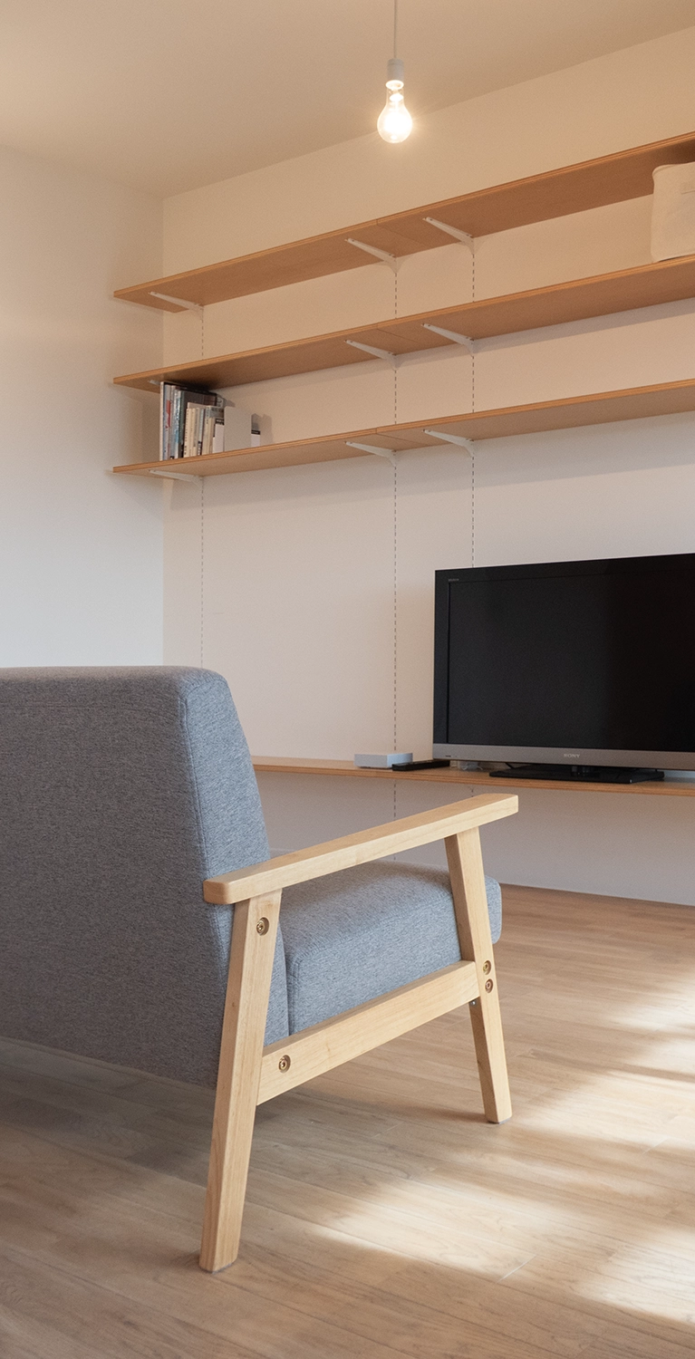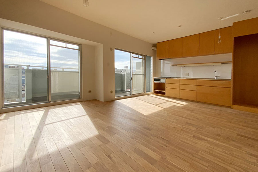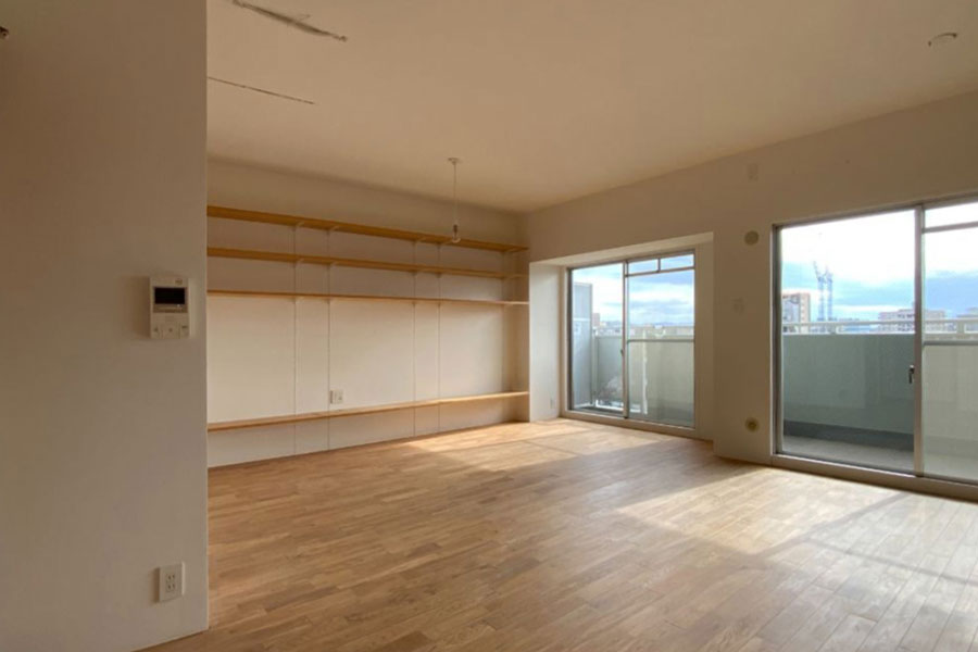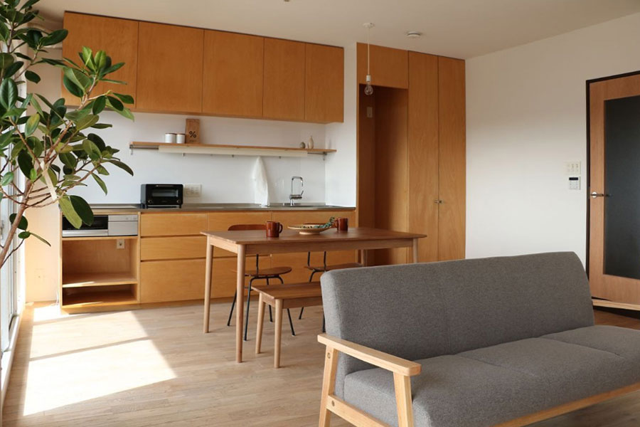 The home features a spacious open-plan living, dining, and kitchen, along with two Western-style bedrooms. For a couple, there is ample room to create a home office and enjoy a relaxed lifestyle, while the size remains comfortable even for a family of three. The residence was renovated in 2025 using abundant solid wood throughout. Large windows in the living area bring in plenty of natural light, creating a warm and inviting space where the family can spend time comfortably together.