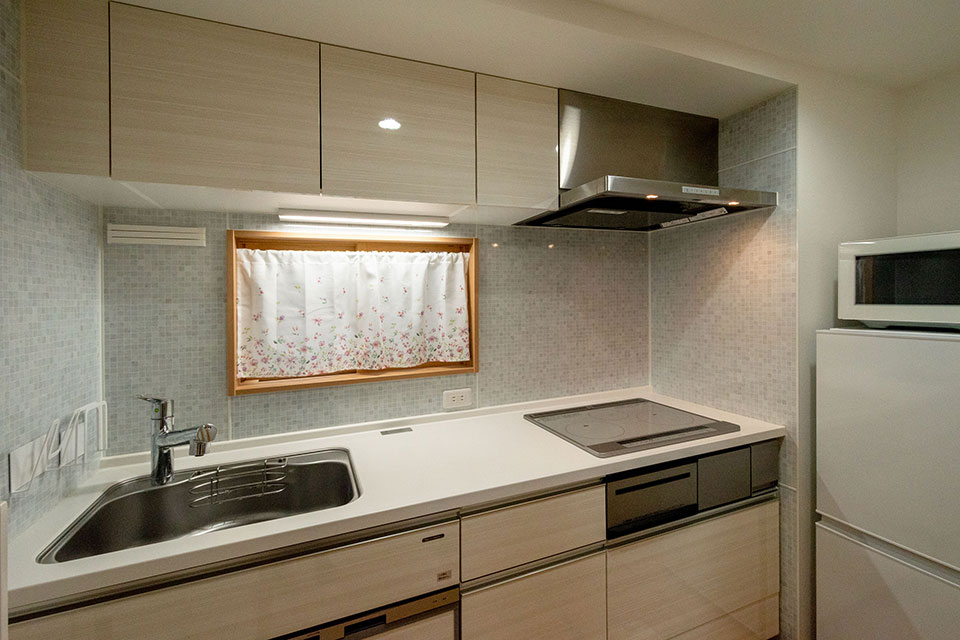 Included appliances and furnishings: Air conditioners, ceiling lights, washing machine, refrigerator, microwave, rice cooker, electric kettle, dining table and chairs, television and stand, gas fan heater, kotatsu set, low sofa, bookshelf, desk and chair, air purifier, and custom-made curtains. *Furniture removal is available upon request.