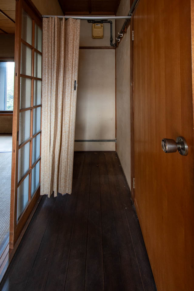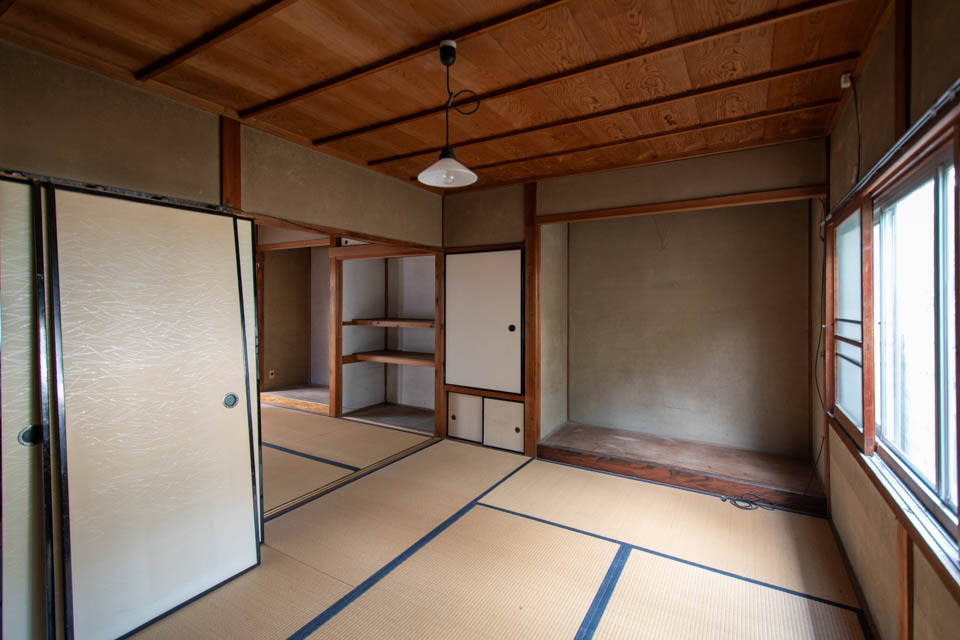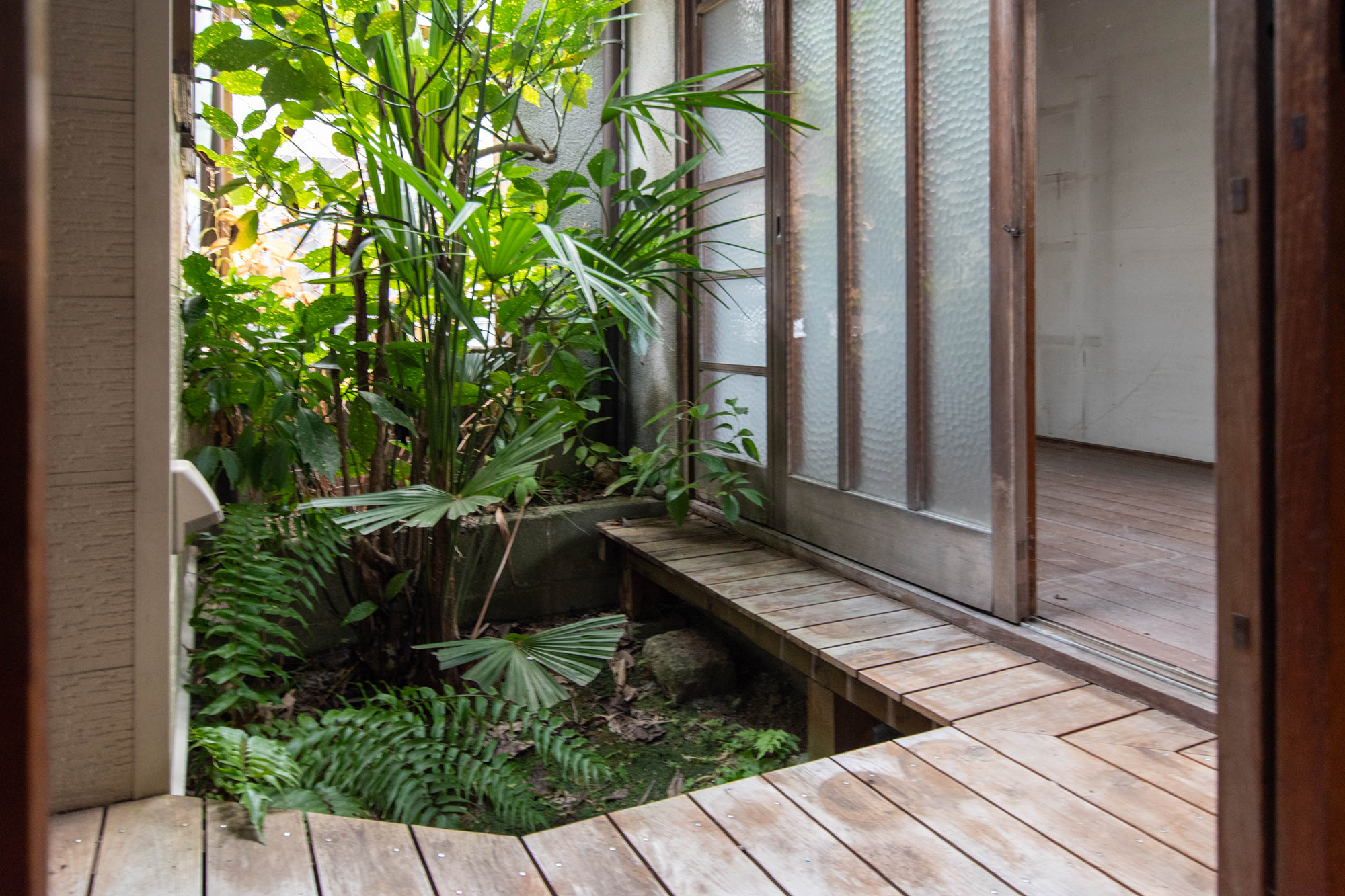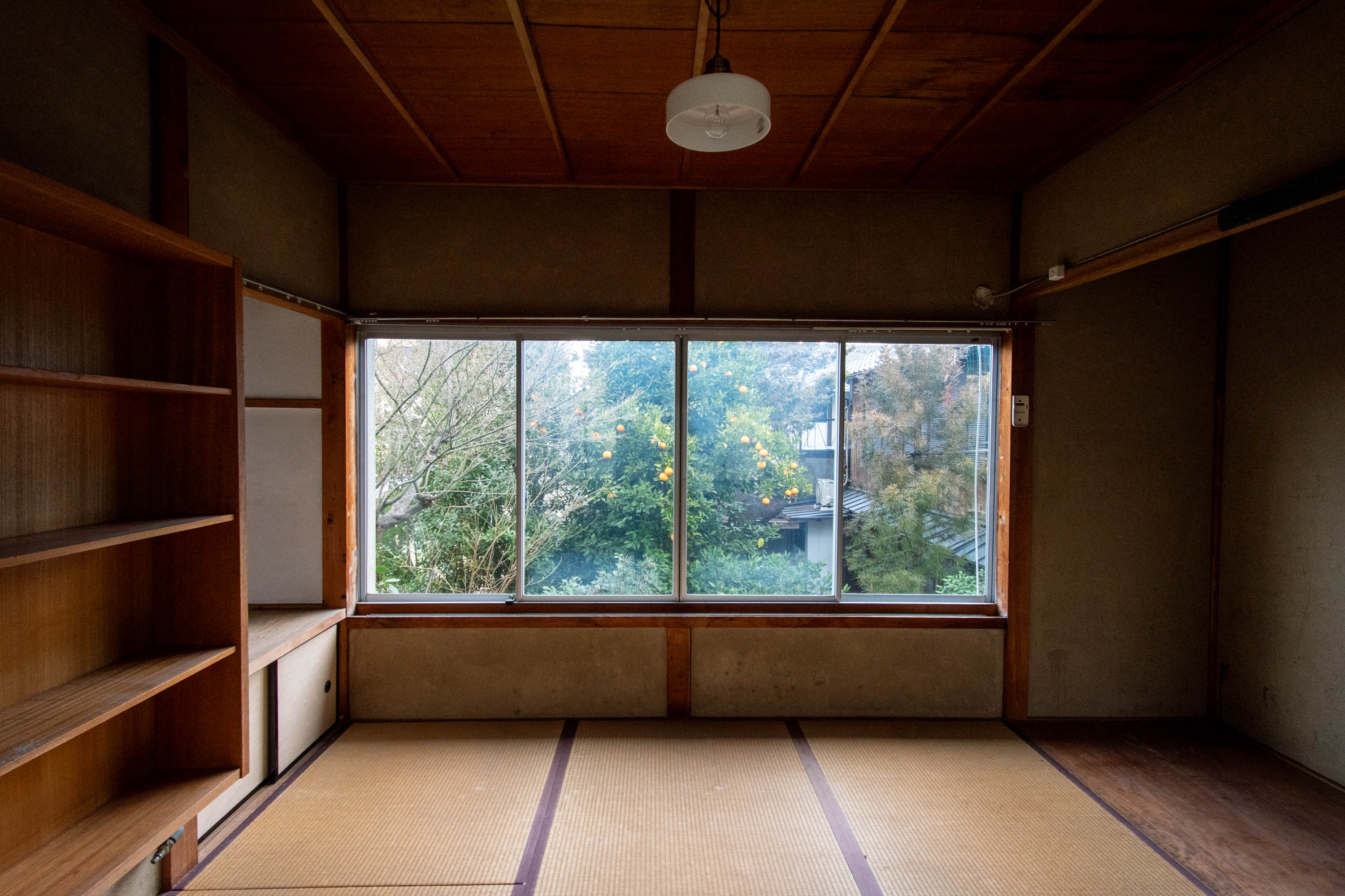 Set deep within the alley yet surprisingly bright, the layout is complemented by a small engawa veranda and garden that add a gentle sense of openness to everyday life. A retro kitchen and glass fittings preserve the home’s original character, while eight rooms plus a kitchen allow for flexible use. From the southwest-facing room on the second floor, the window frames a neighboring mandarin tree, offering a seasonal view that changes throughout the year. This is a residence that carefully preserves the charm of the mid-Showa era.